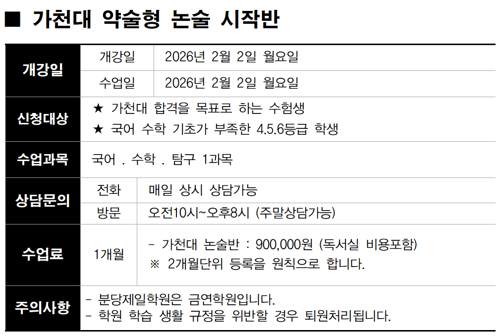 가천대 논술 시작반 개강